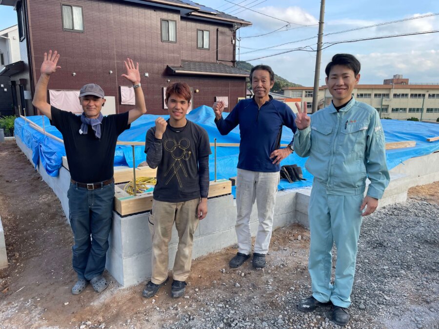基礎工事も順調です テツ大工と記念写真でした ナイスです