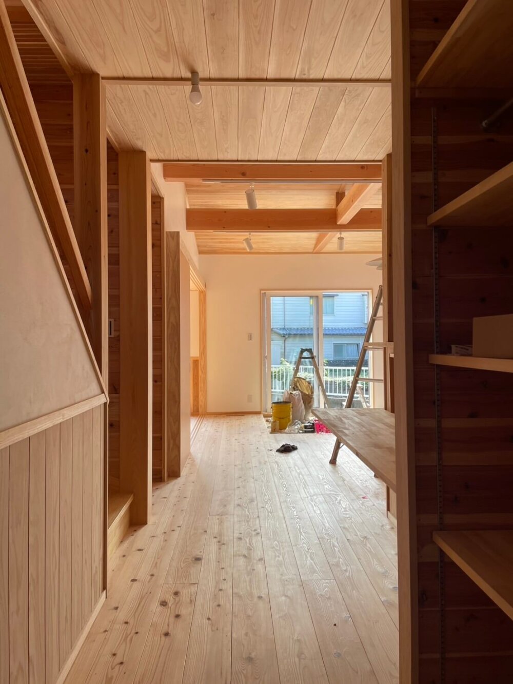 造りたてホッヤホヤのお家は木が白い感じです。
