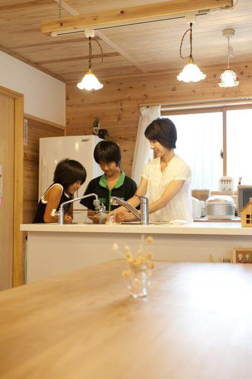 お気に入りは、アイランドキッチンと木製造作食器棚 広い玄関には、造作木製シューズボックス