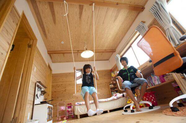 ご主人のための、木の書斎もあります。木のお部屋で、お子様は、のびのびと成長していくのです。 木がいっぱいで、くつろいでいます。
