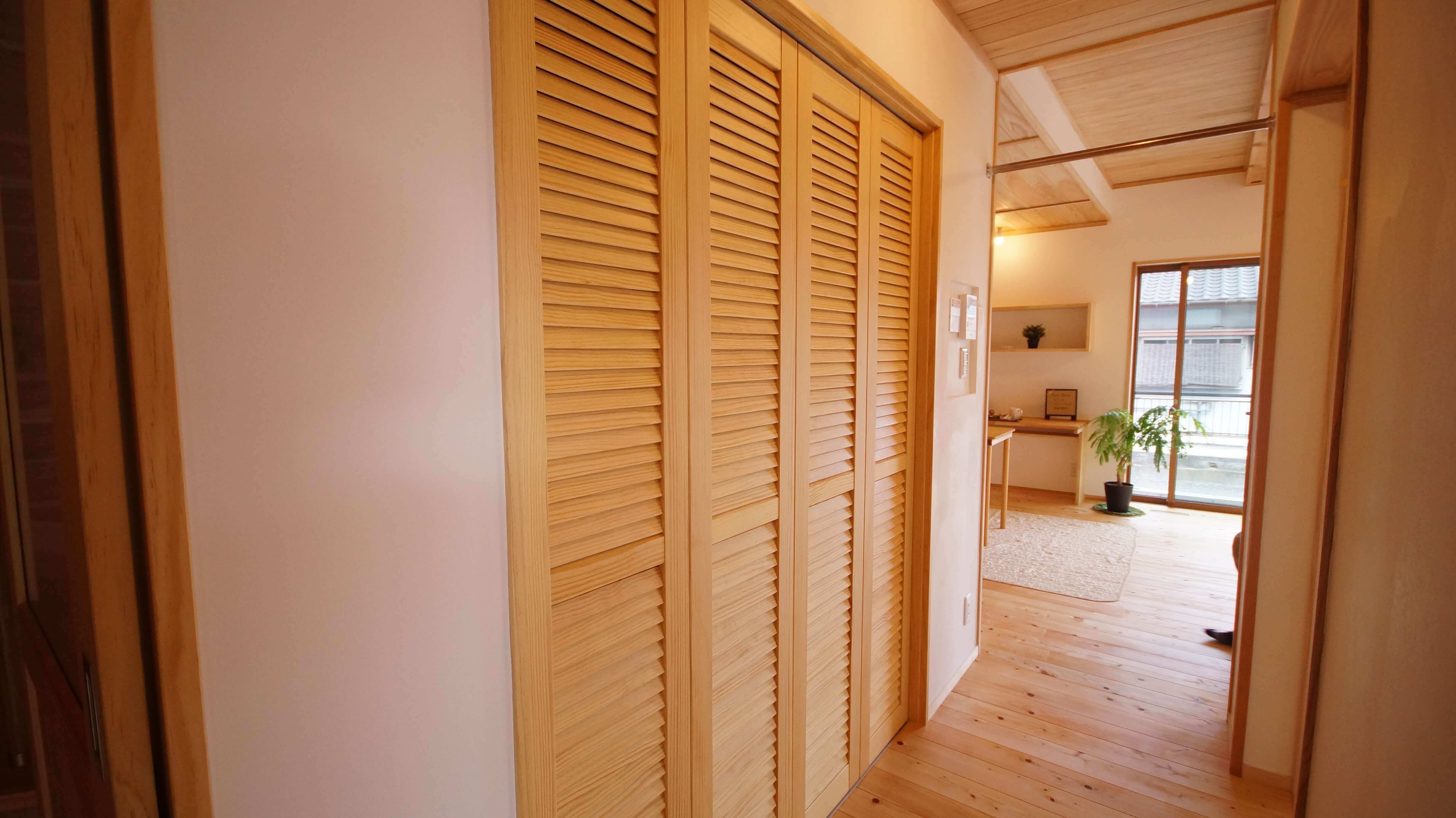 奥まで抜けていくような漆喰の白さが気持ちいい木のおうち。