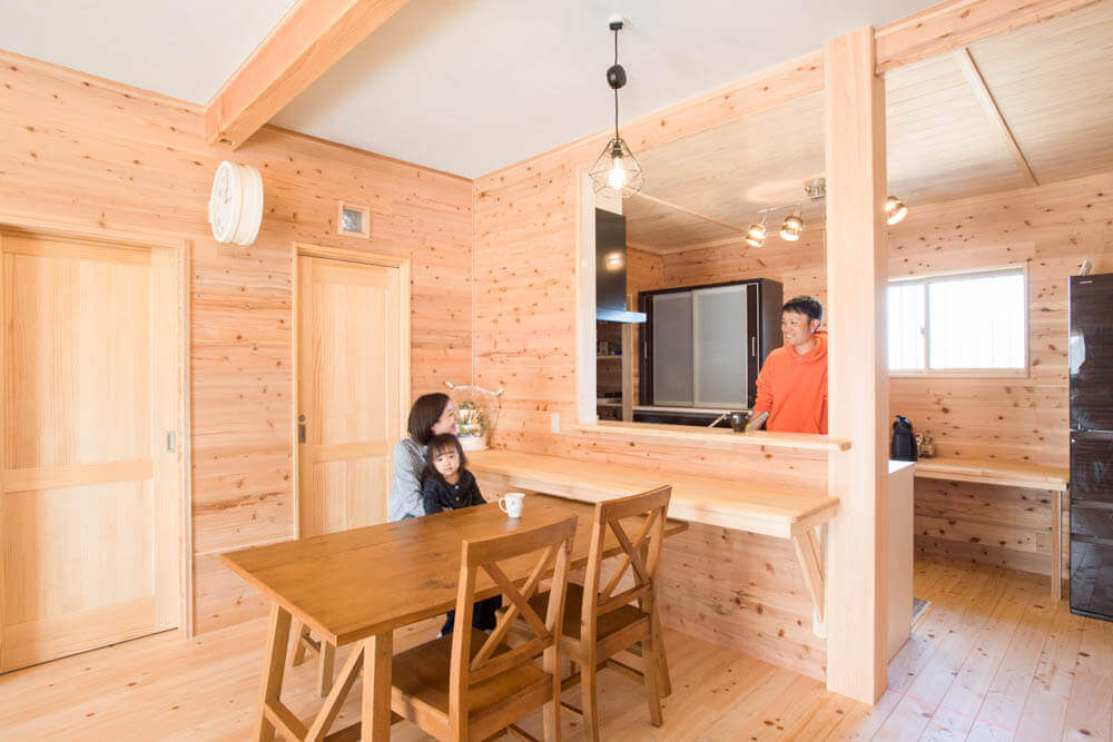 (株) グリーンウッドが提案すする〈木で幸せの家〉は、身体に安心で安全な杉ヒノキの無垢材と、漆喰や羊毛断熱などの厳選した自然素材で造られる家。