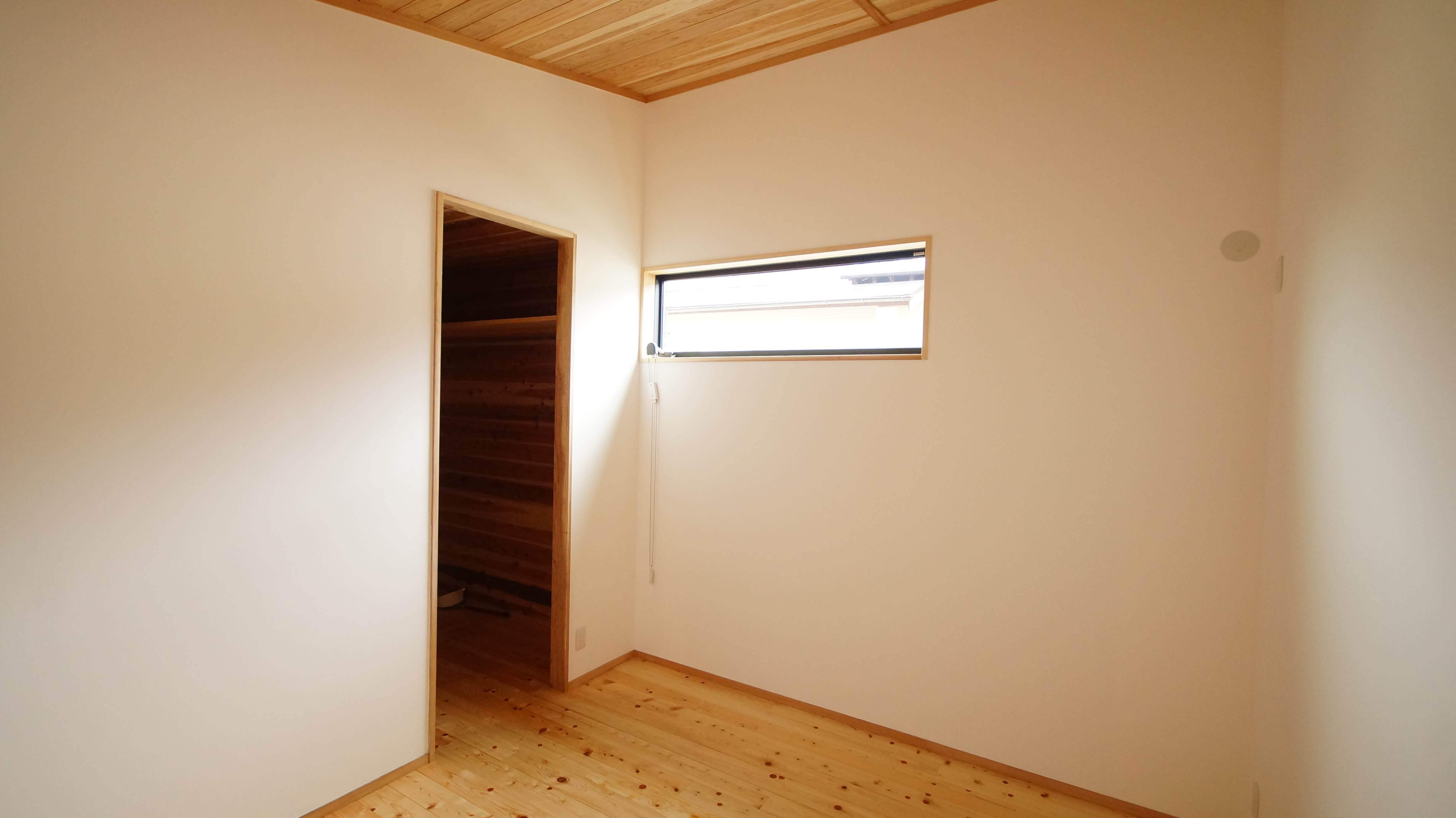 寝室には光を入れながらプライバシーを確保できる高窓。カーテンをつけずに過ごせそうですね。