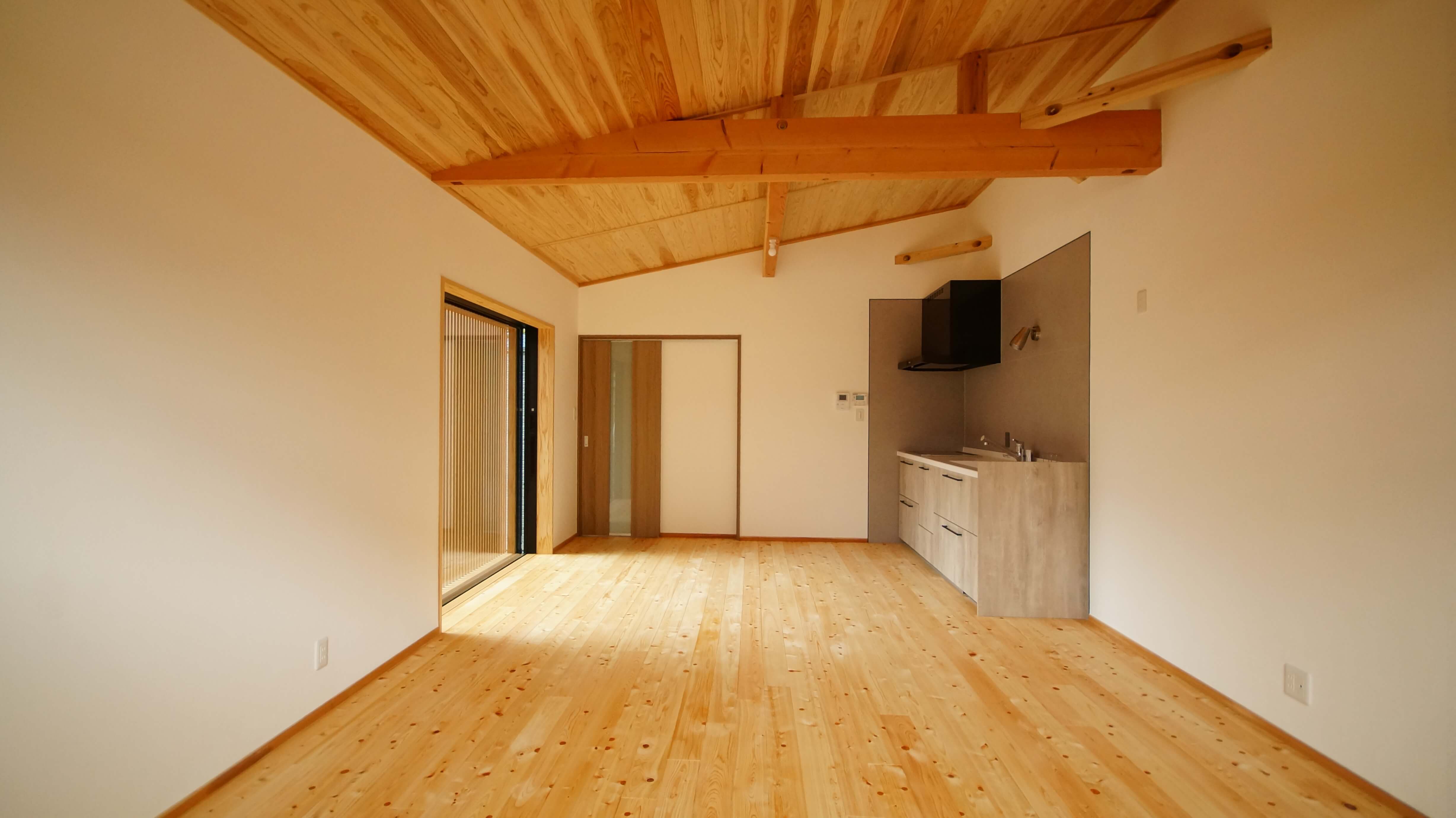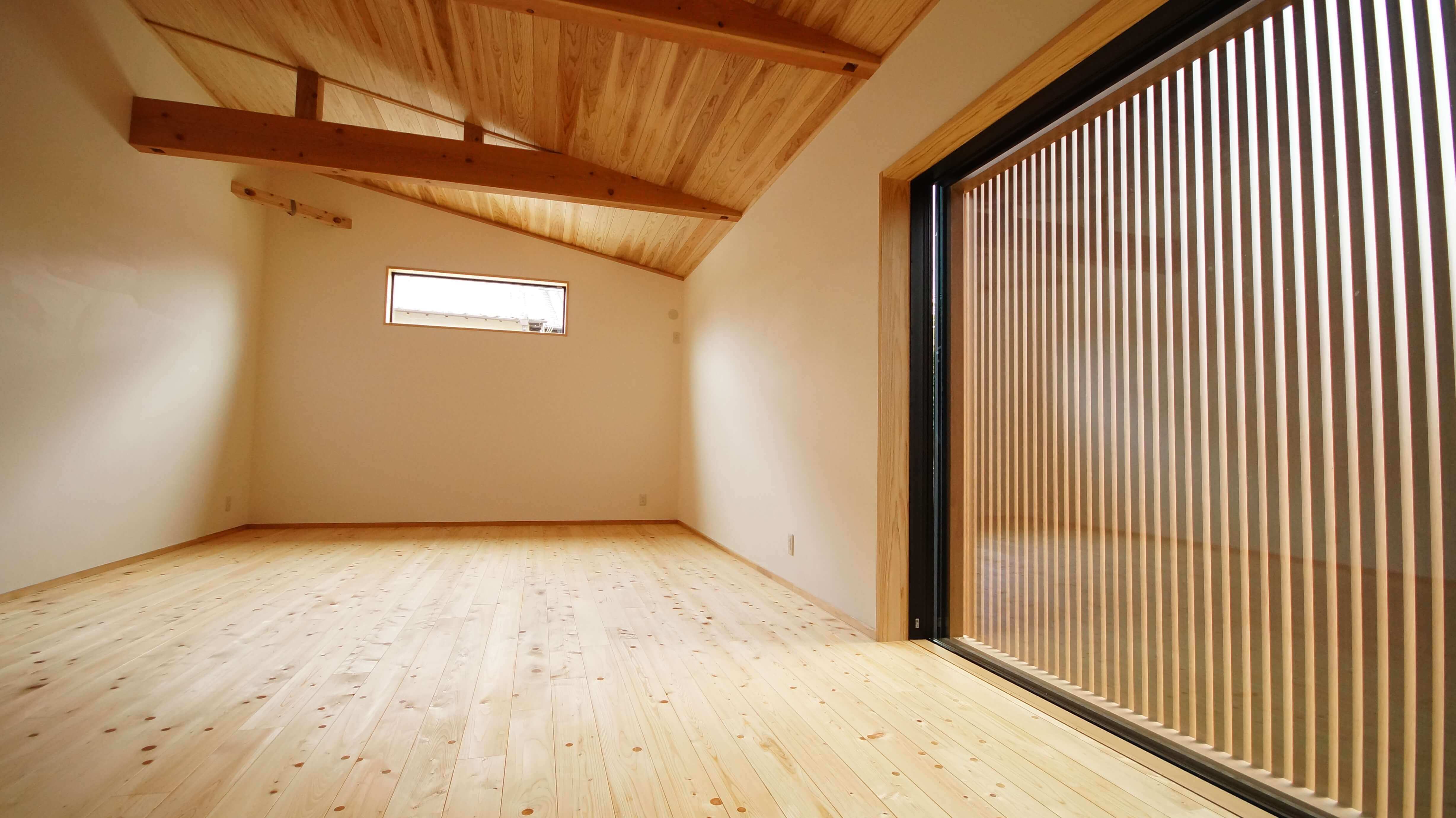 勾配のついた天井が部屋を広く演出してくれています。
