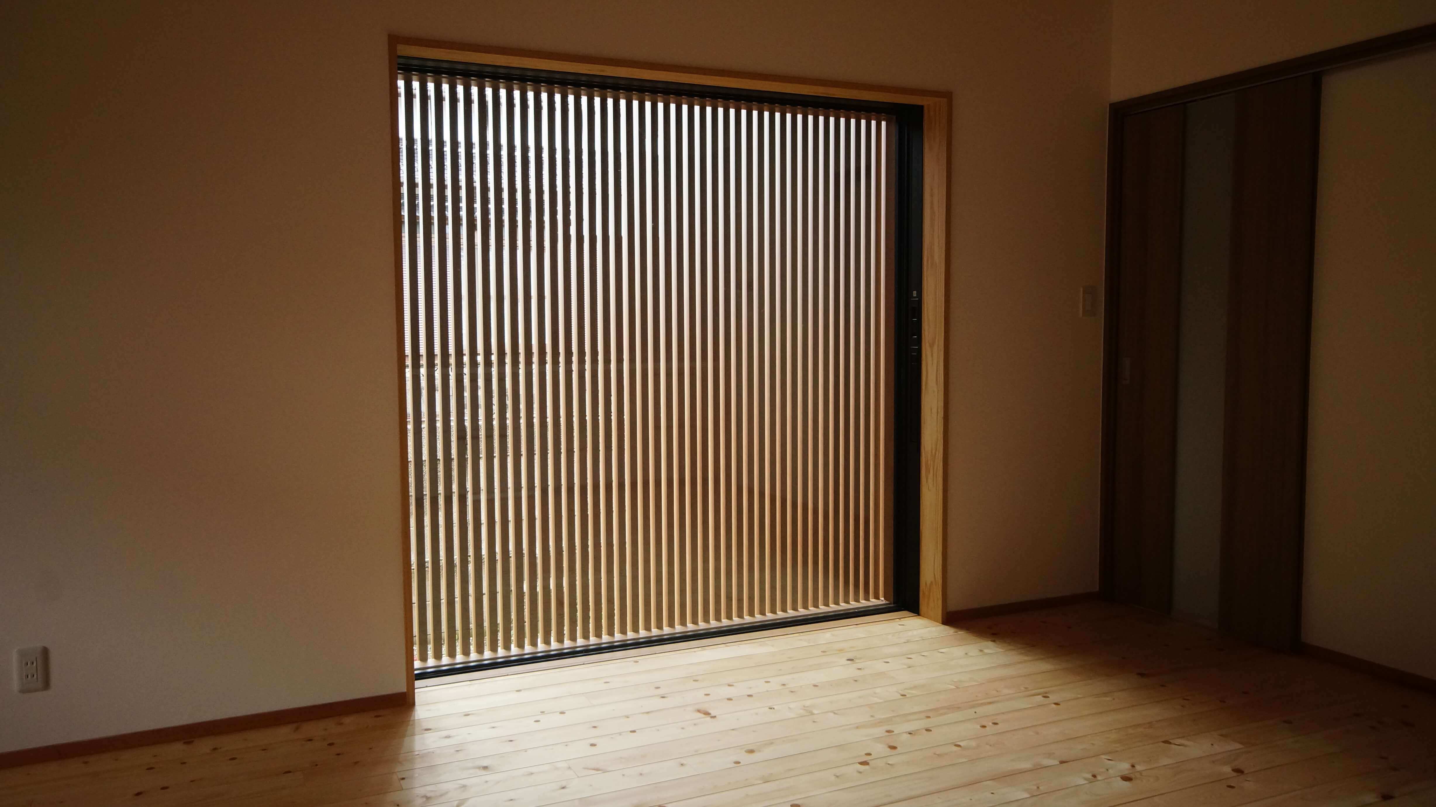 外出時や日差しが気になる時は目隠し格子ができ、普段はまるでガラスがないように見える窓です。