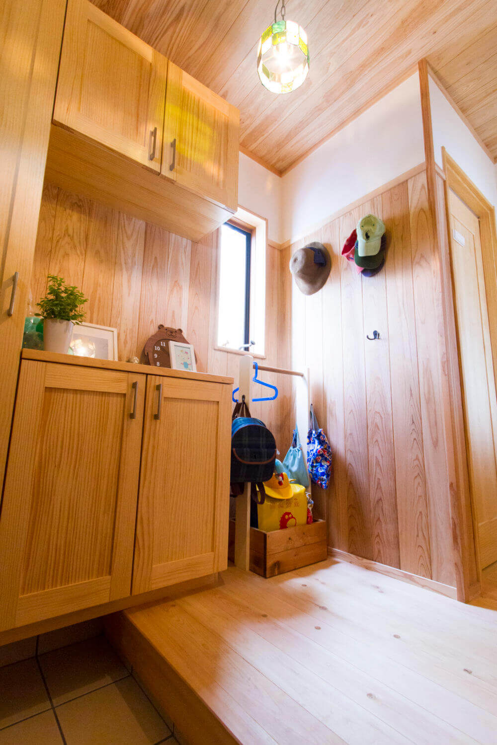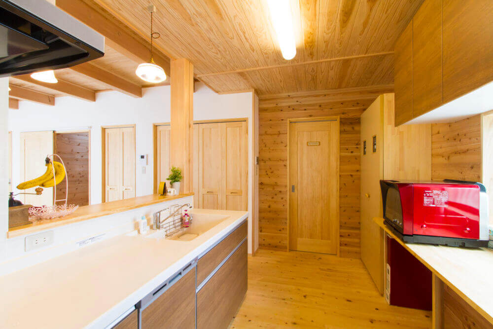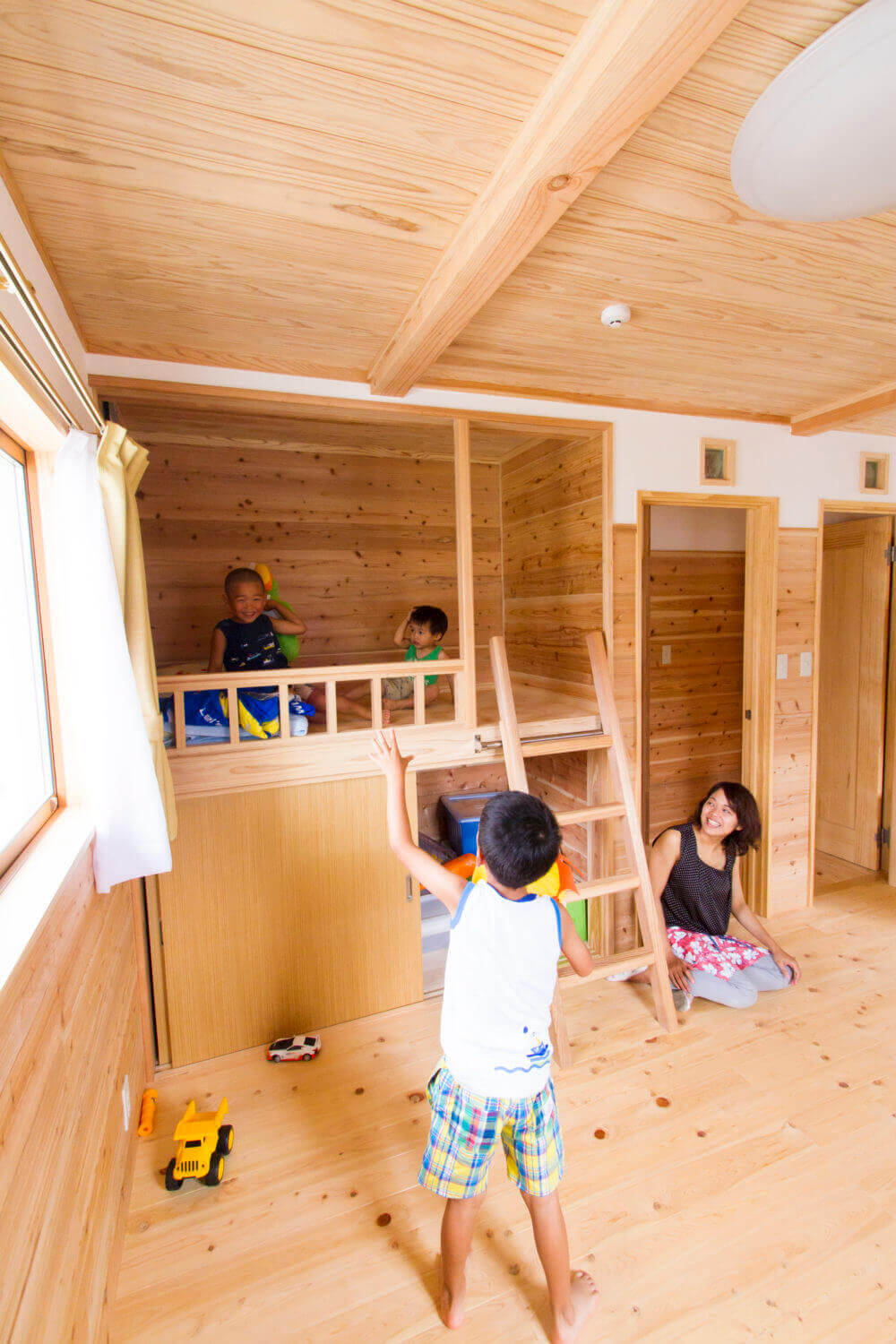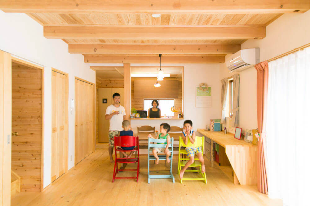 「私たち2人とも木の家で育ったので、家を建てるなら木の家を建てたいと思っていました」というKさん夫妻。雑誌を見て同社のショールームを訪ね、社長の人柄の良さに触れ、新築を依頼したのだという。長男の小学校入学に合わせ、完成した住まいは、木が香る広々としたリビングが開放的。「以前のアパート住まいに比べると、3人が走りまわっても、お隣や下の家を気にしなくていいので、ストレスを感じない点もなりよりです」とKさん。