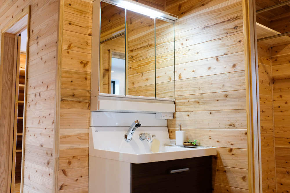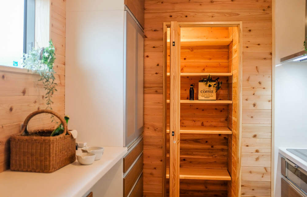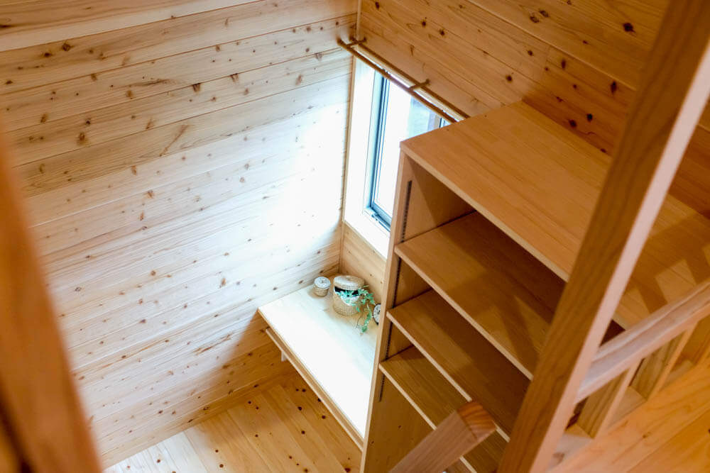 無垢材の床は冬でもほんのりと温かみがあり、素足での触れ心地もよい桧。ごろんと寝そべる
