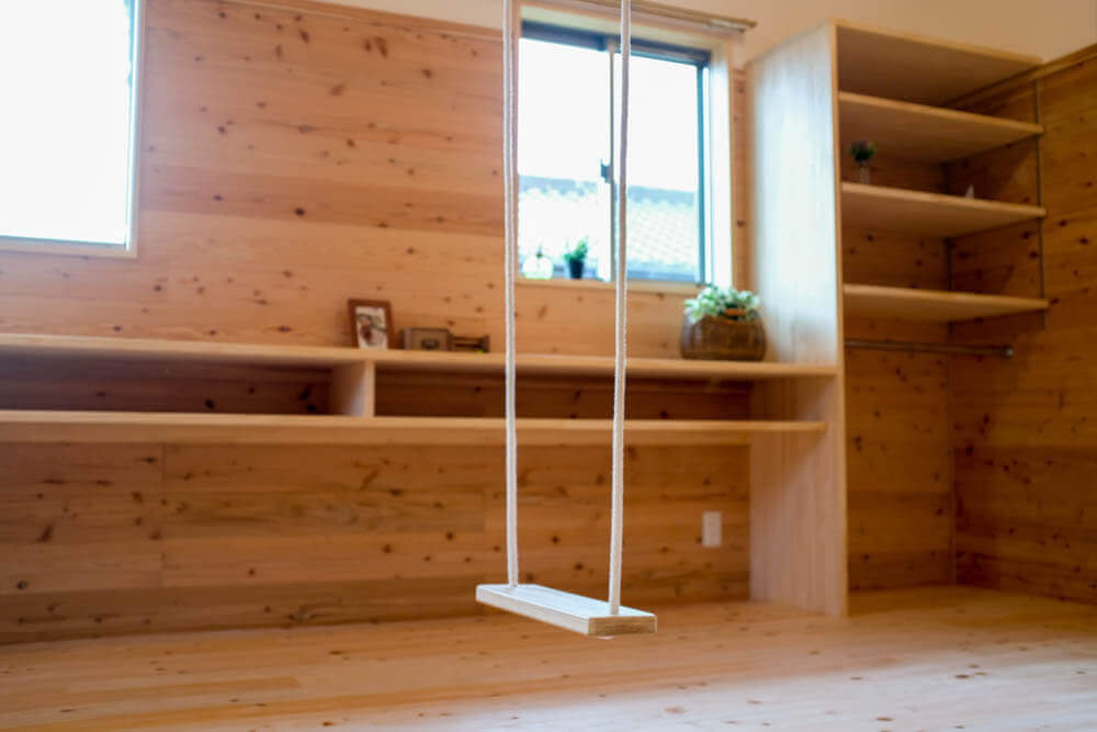 平屋なので、家の中心にリビングを計画し、リビングから、和室、子ども部屋、に行けます‼