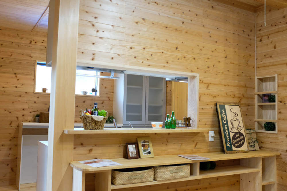 木の家工房グリーンウッドのモデルルームを訪ね、社長やスタッフの人柄の良さに触れ、施工を依頼。価格面においても予算に合わせ、希望をできる限り実現しようとする姿勢に、信頼感を持ったそうだ。Wさんの希望は薪ストーブ置くこと。開放的なリビングに、堂々と置かれ、憧れの空間が実現。ストーブ設置のため、耐火素材として使用した自然石の色や風合いもストーブと見事にマッチしている。