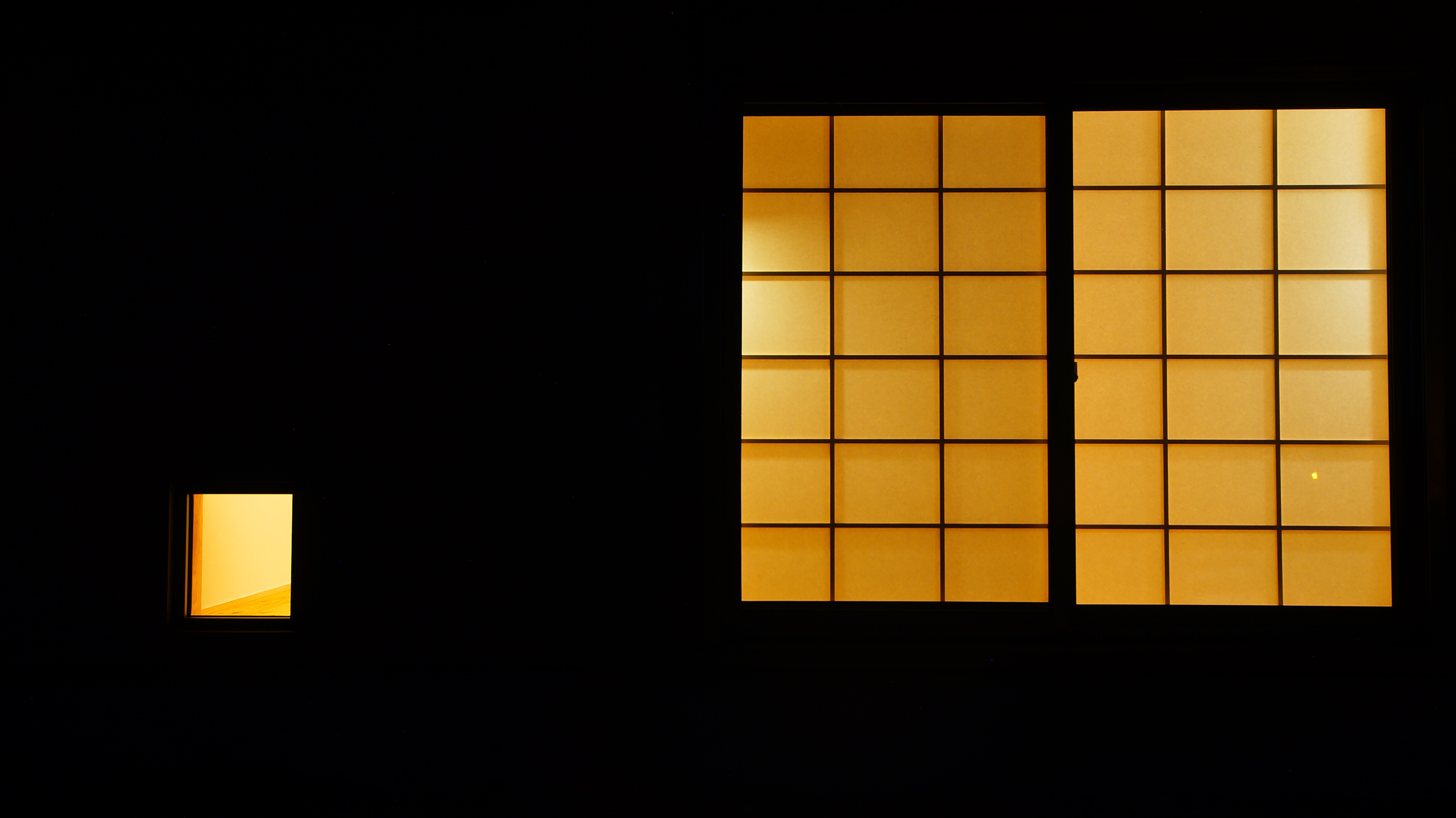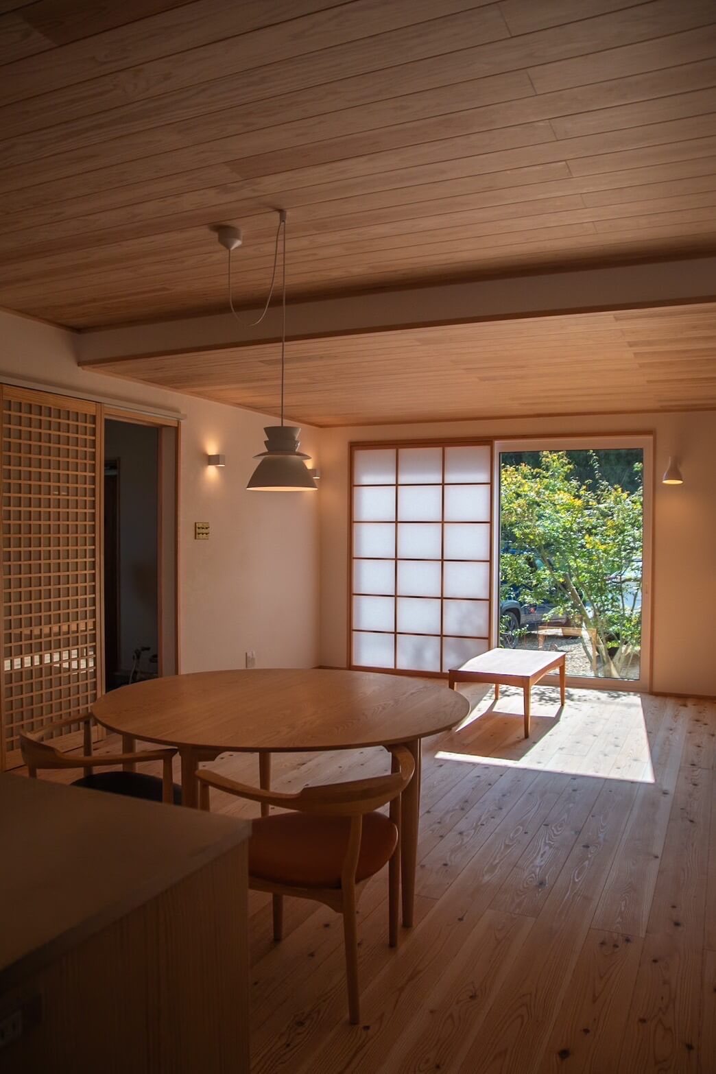 ヌックにある地窓に障子を設けて視線は遮りながらも光は感じれます。