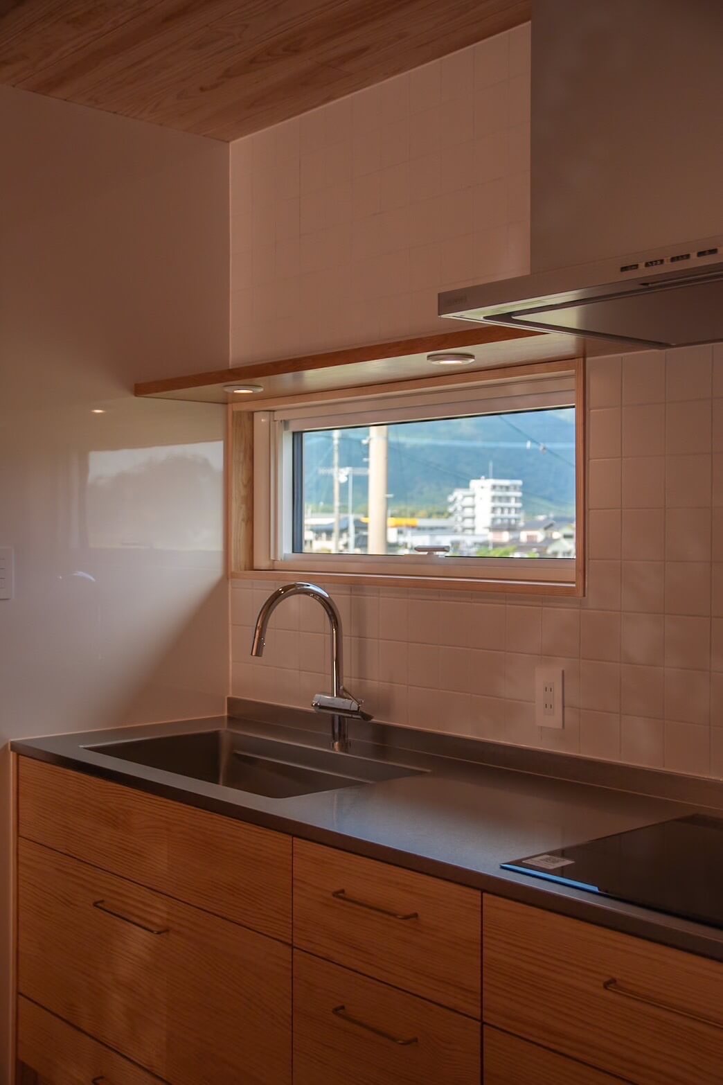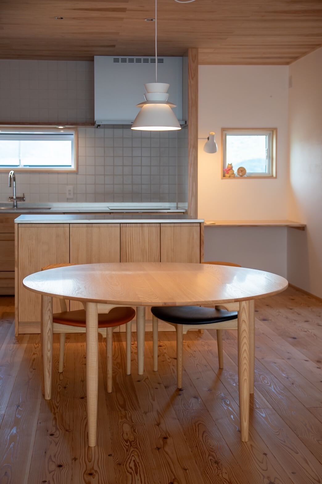 キッチンの隣にあるカウンターで書き物や子供が宿題を済ませ、ふと顔を上げると雄大な自然が絵画のように見え心を満たしてくれます。
