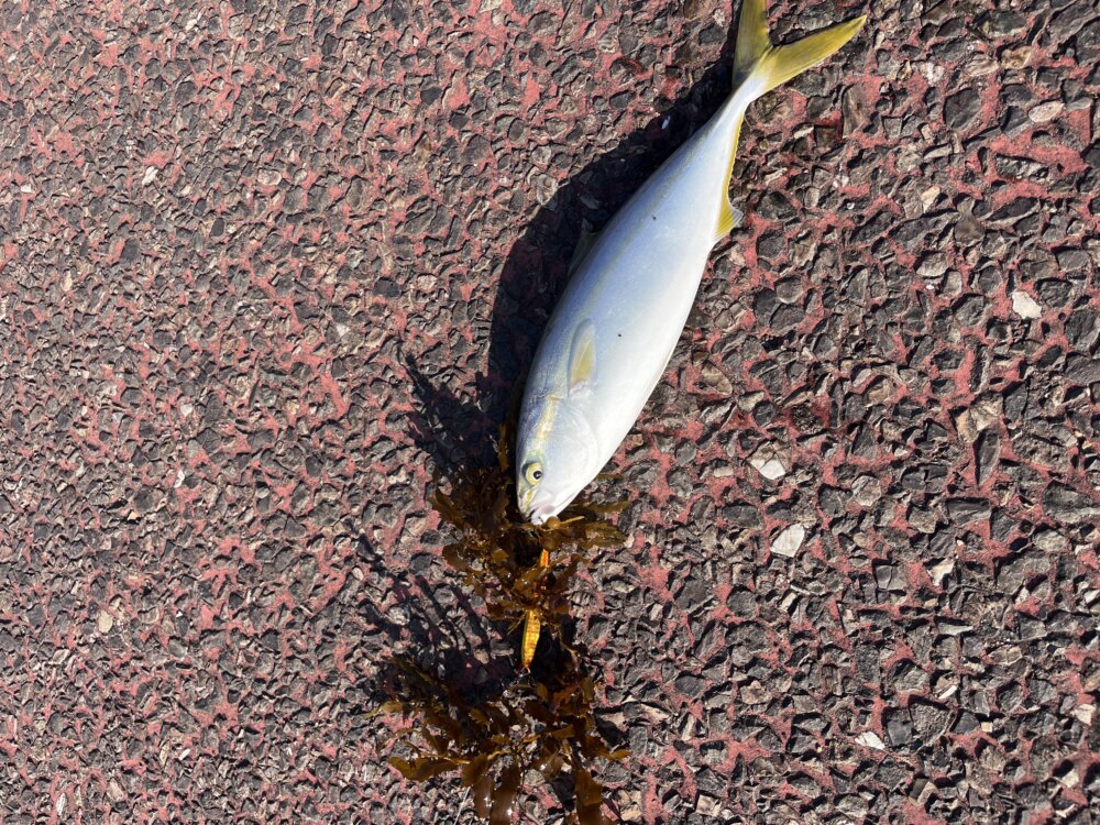 下関の現場の往来で海が近く、突然魅力を感じ実家にある15年前のシーバス釣りの竿などを掘り出して釣りをしたところブリの子供のヤズが釣れました!