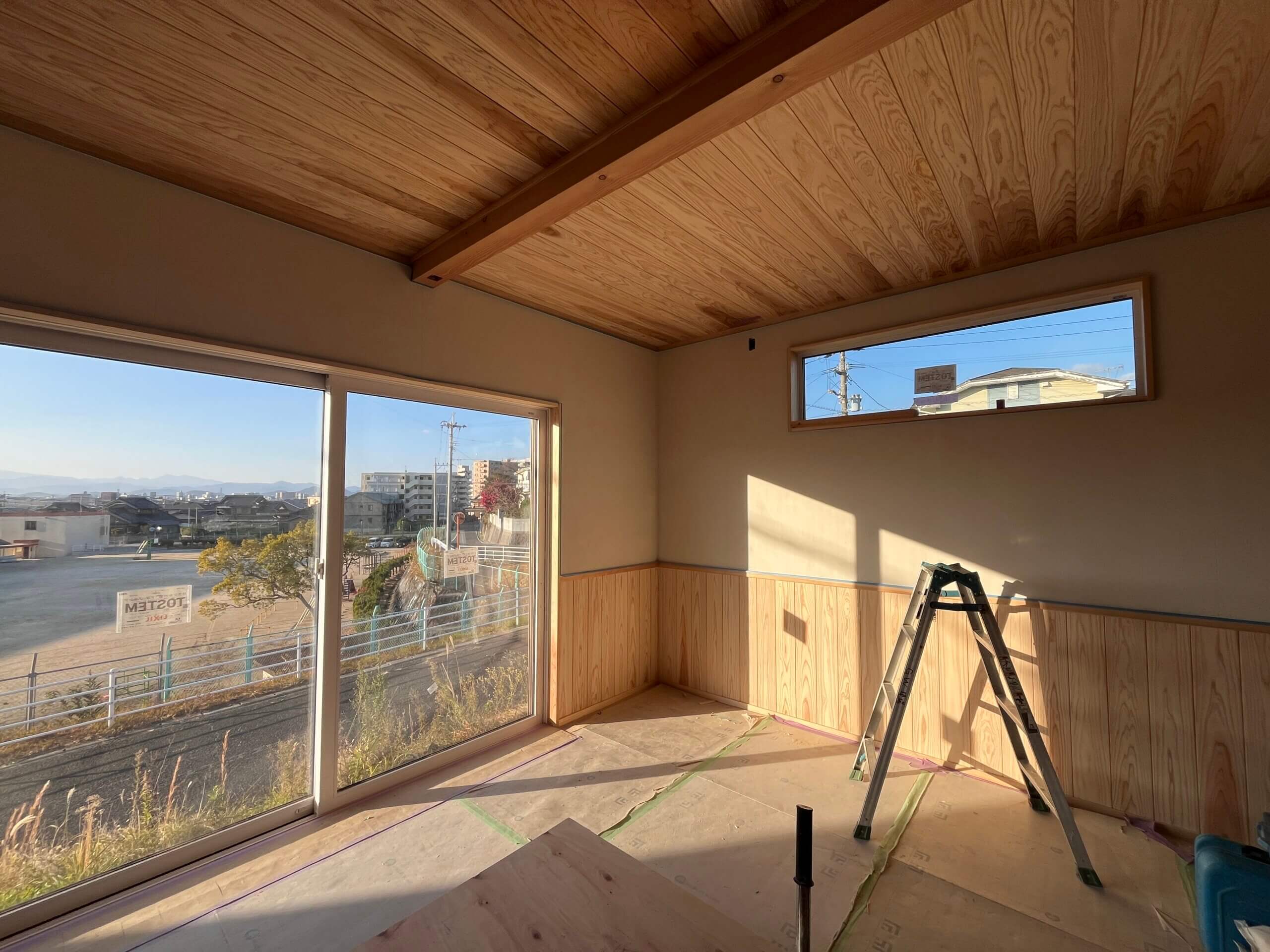 A様邸は順調に進み、内装の漆喰塗りの段取りが出来ている状態でした。