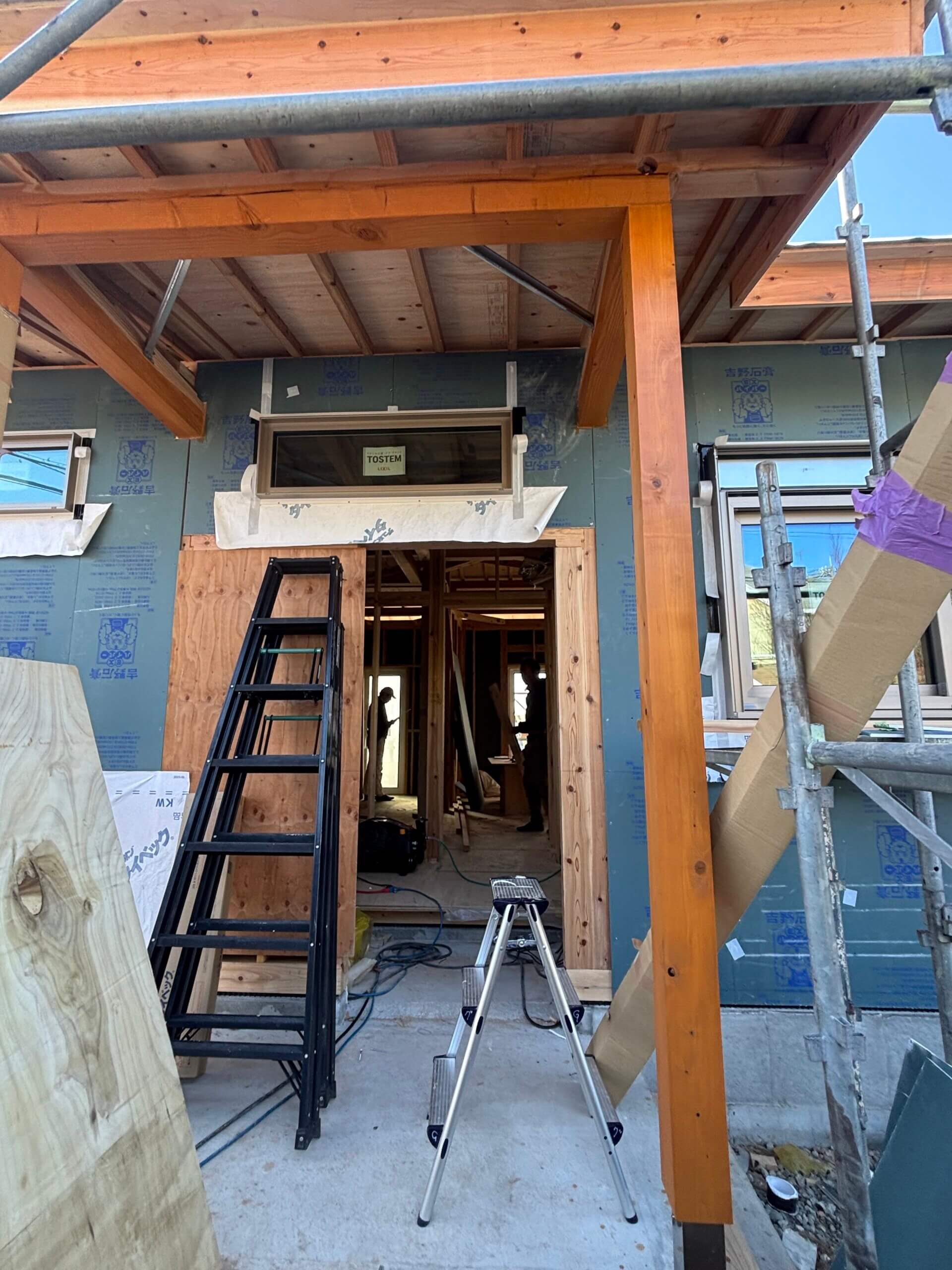 サッシの取り付けも終わりましたら、タイベックという当日防水シートを張りました!