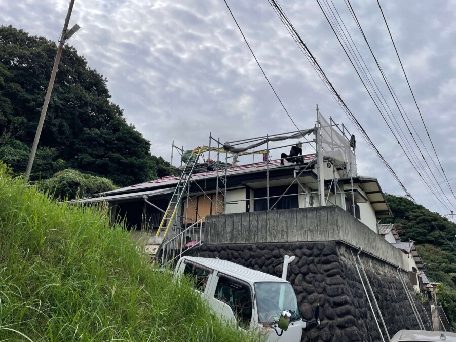 今回は、施主様のご要望で耐震を考えて屋根を軽くしました