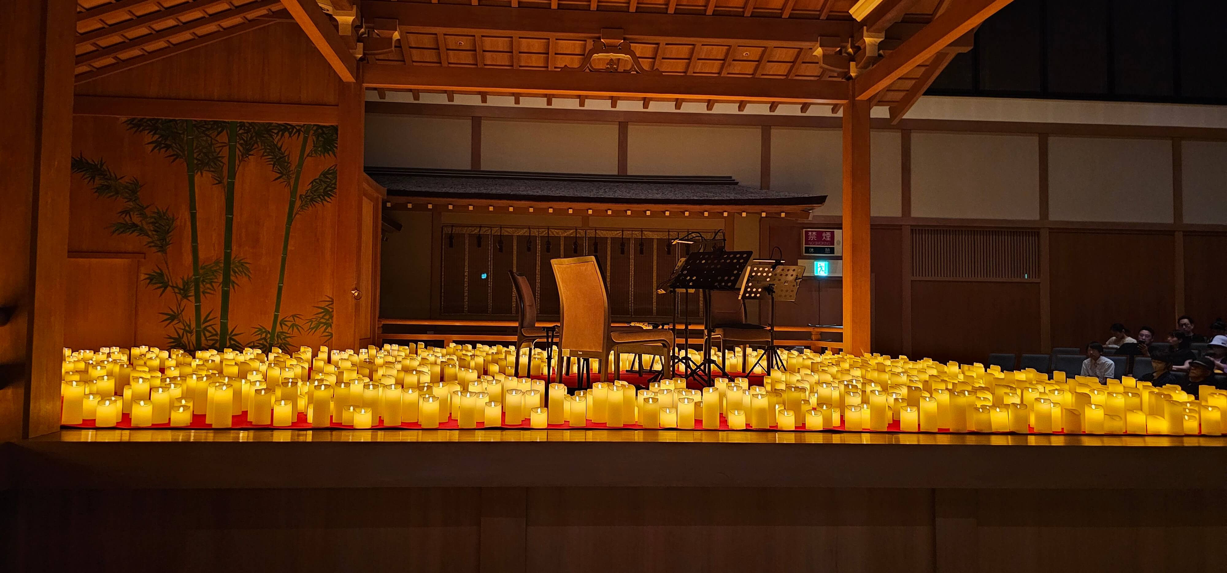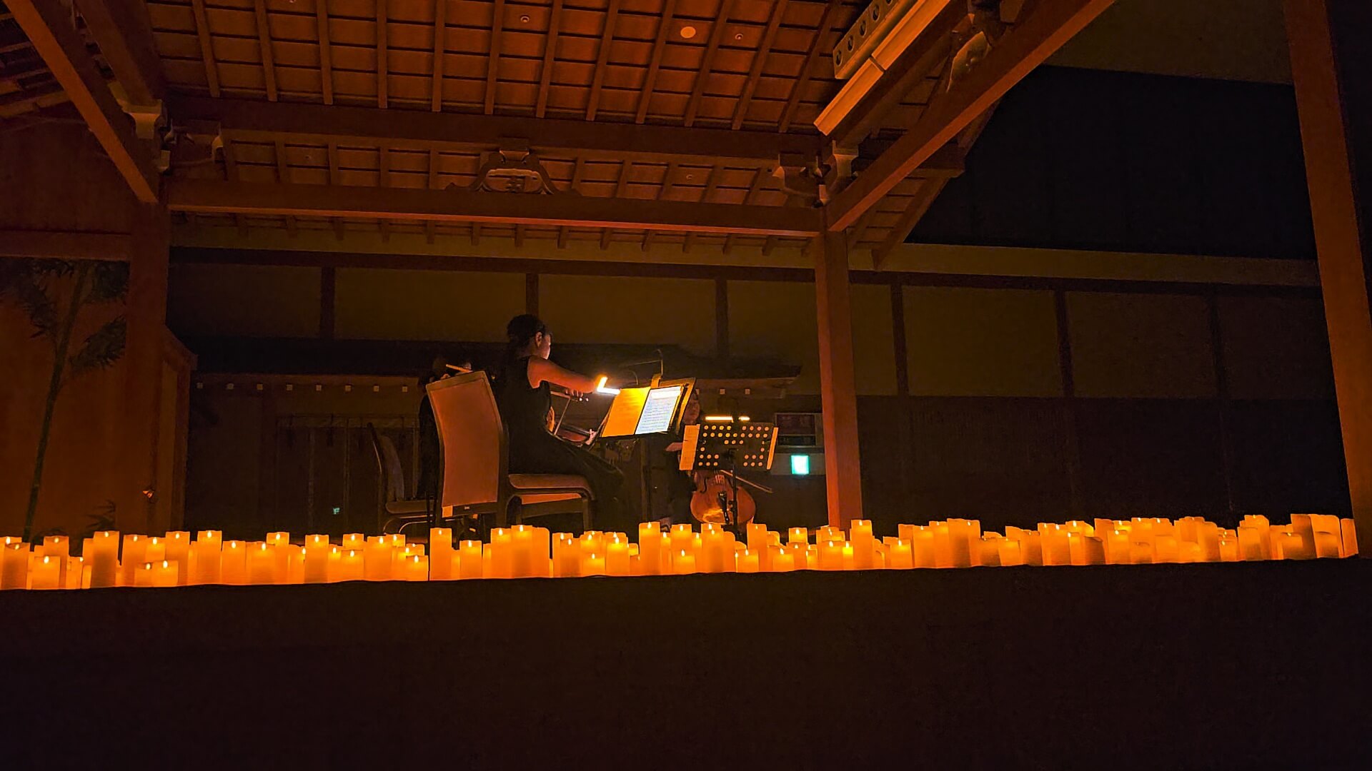 すごい数のキャンドルに囲まれた幻想的な空間で生演奏を