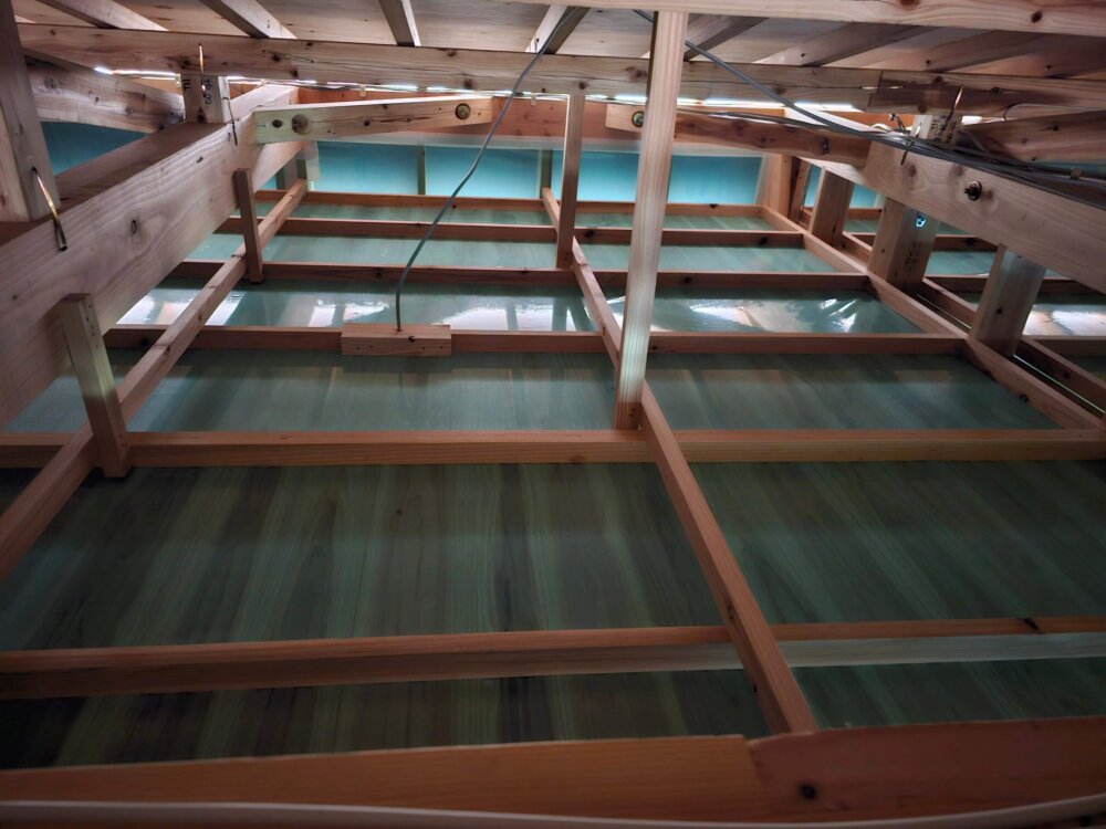 今回は杉と檜の床を貼りましたよ