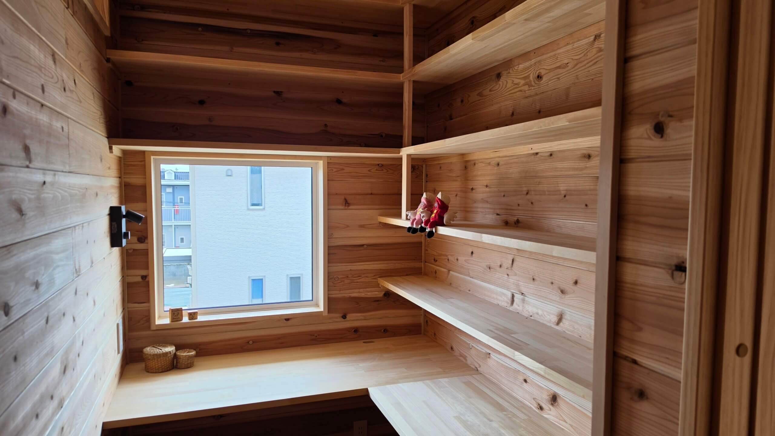 天窓などの小型の窓は窓枠の内側に取り付けました