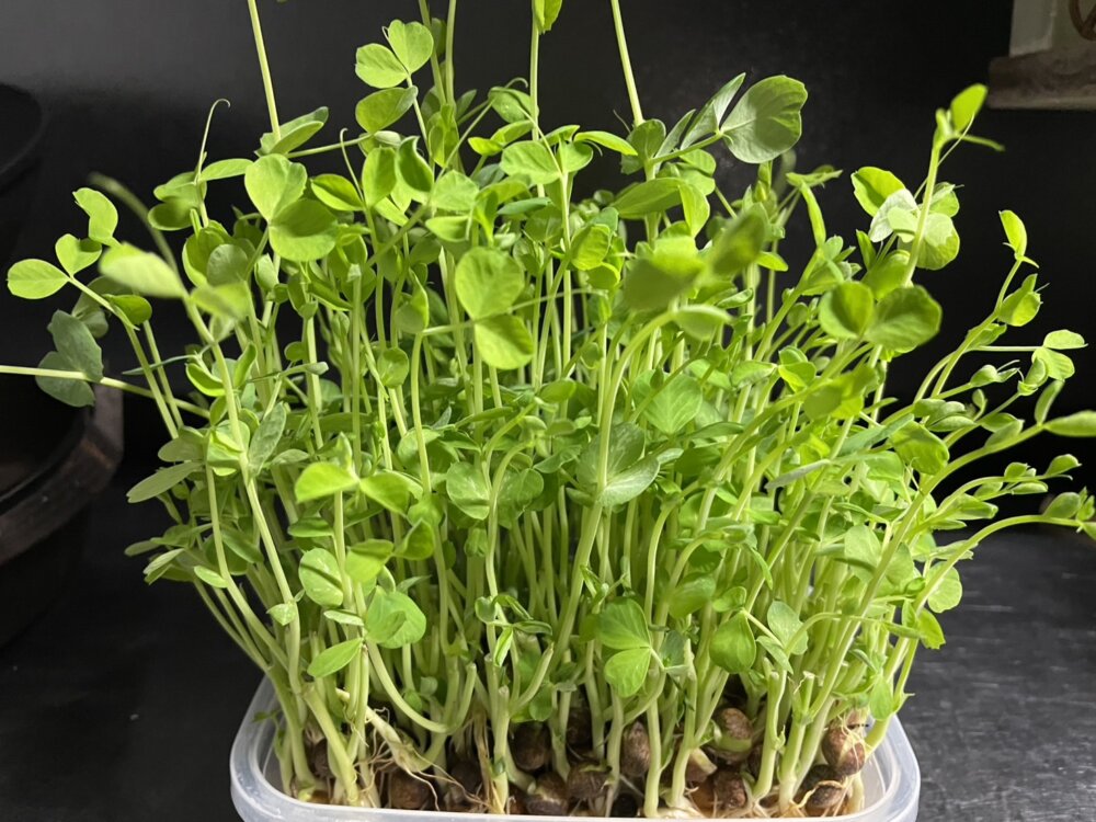 豆苗も二回目まではすくすく育ちますが、三回目となると時間もかかるし、何だか細い感じもありますが、美味しいので育つのまっています。