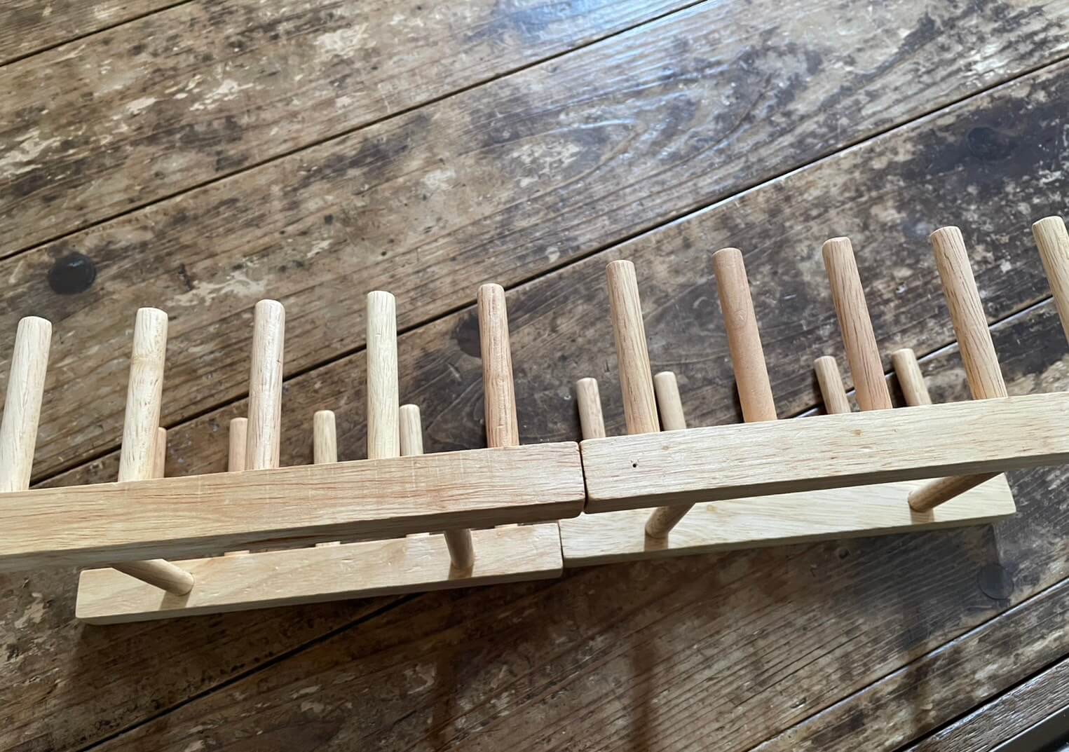 今年は縦に収納の横から取ることに決め、ダイソーさんで見つけたディッシュスタンド2個でお悩み解決できました。。。素材は竹、私で大丈夫か。。。金具をビスで止めているとネジ頭がつぶれてしまい苦戦しているところに帰ってきた鶴田部長にバトンタッチ、ビスで止めてもらいお皿が縦に並べられて使いやすくなりました。
