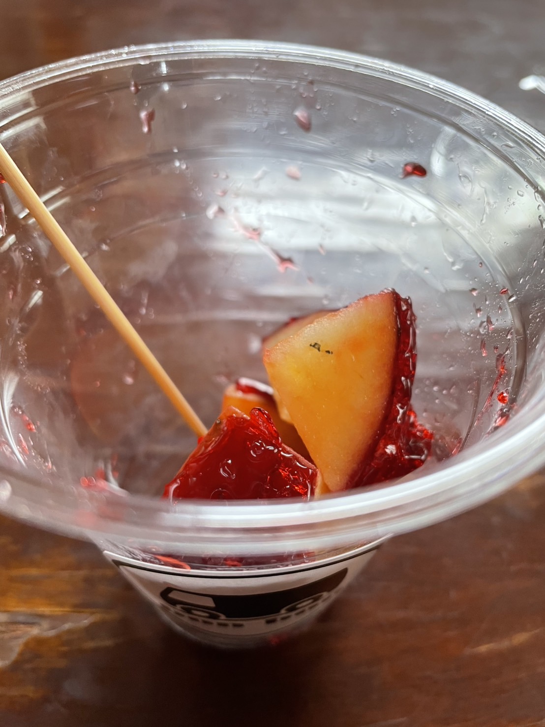 お参りに並んだりしていたので、お腹がすいてしまいリンゴ飴買ってみました。
