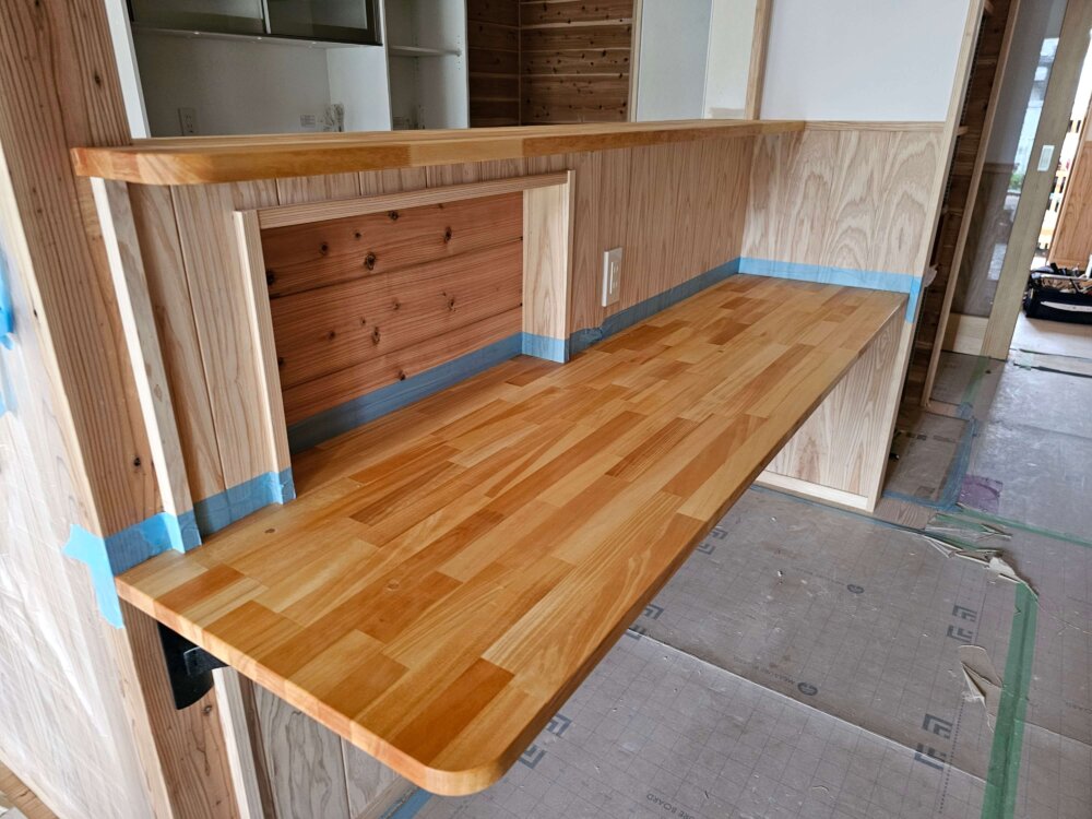 木のカウンターには手触りもよく、汚れにも強い自然保護剤「オスモカラー」処理