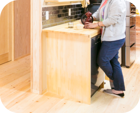 無垢は柔らかいので、立ち仕事をずっとしていても膝や腰への負担が軽減されます。